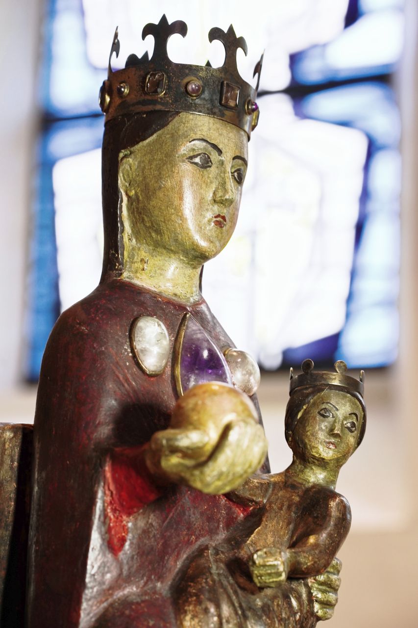 Romanische Sitzmadonna aus Lindenholz.